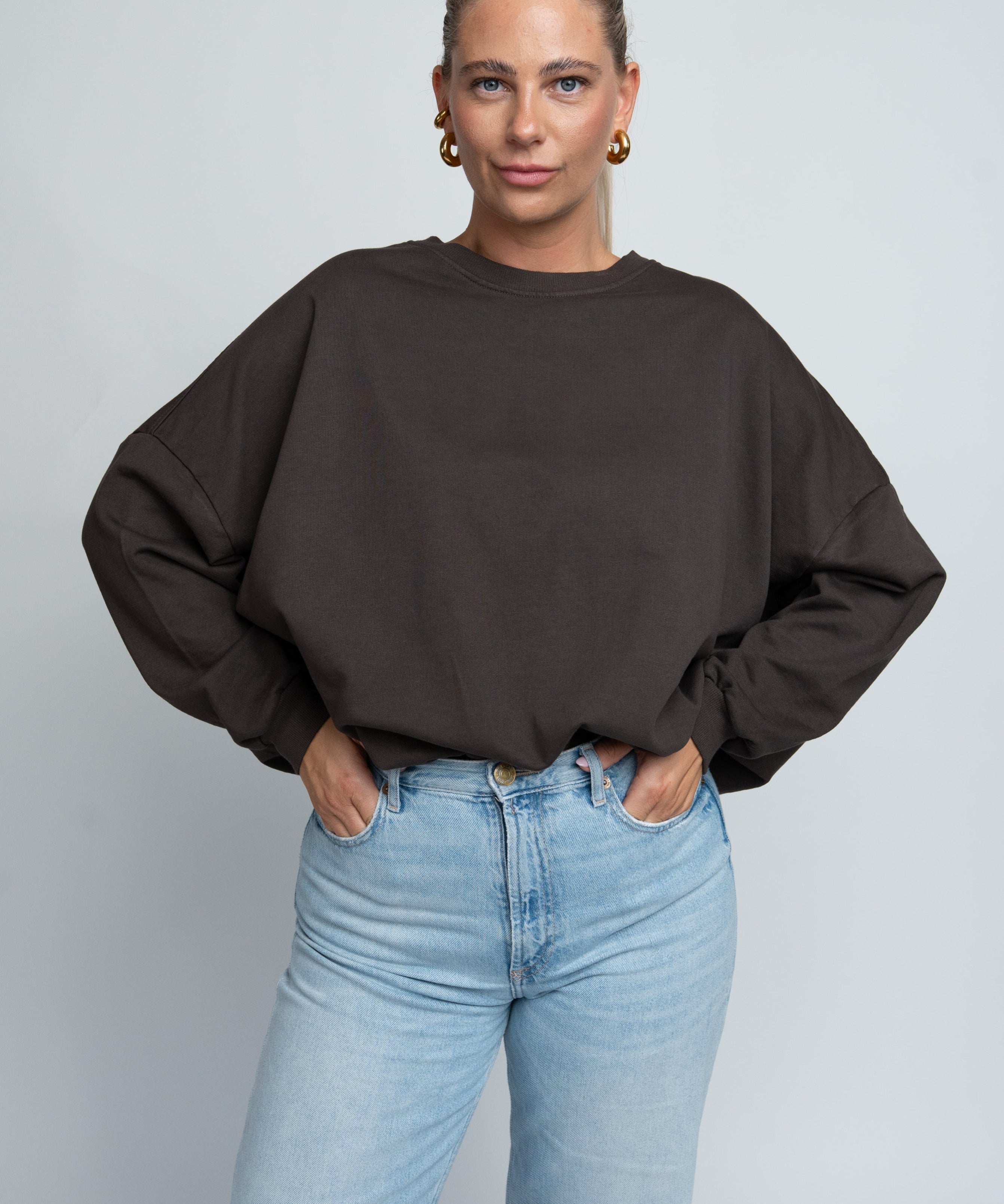 Sweater Oversized mit Bund Dunkelbraun von vorne