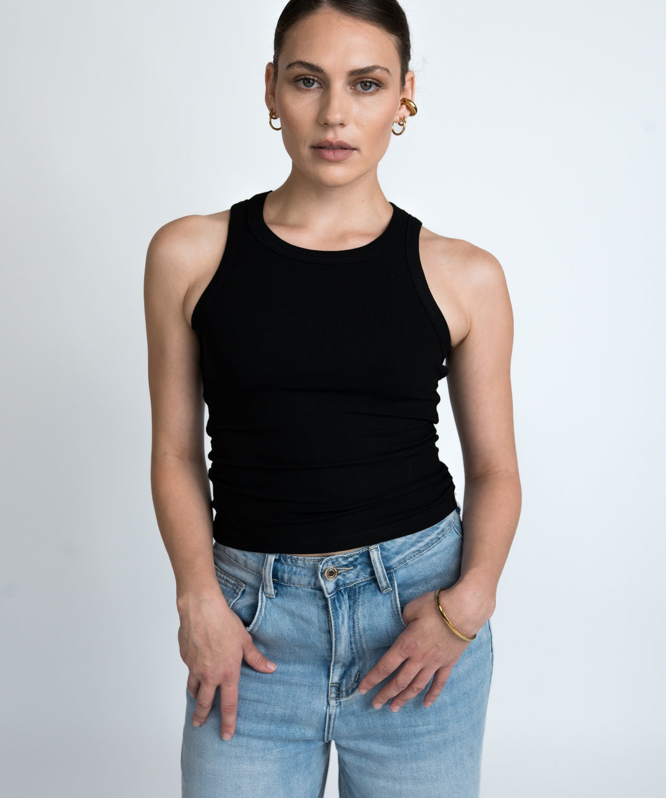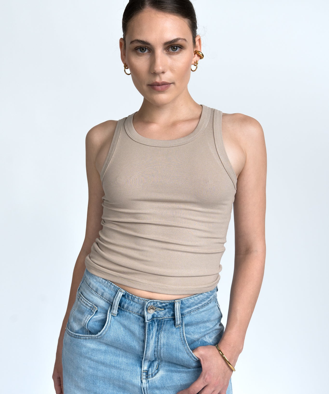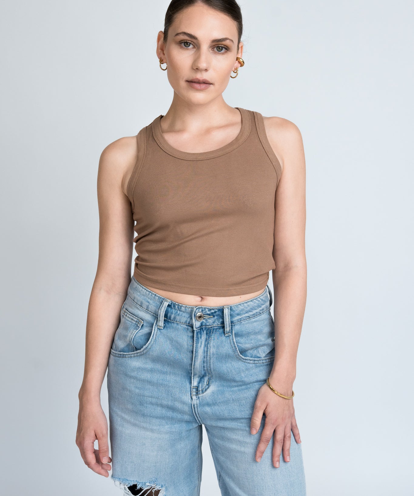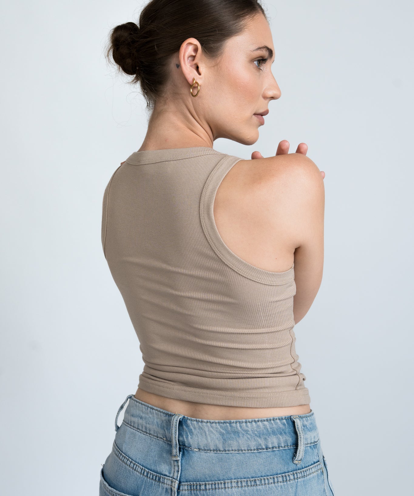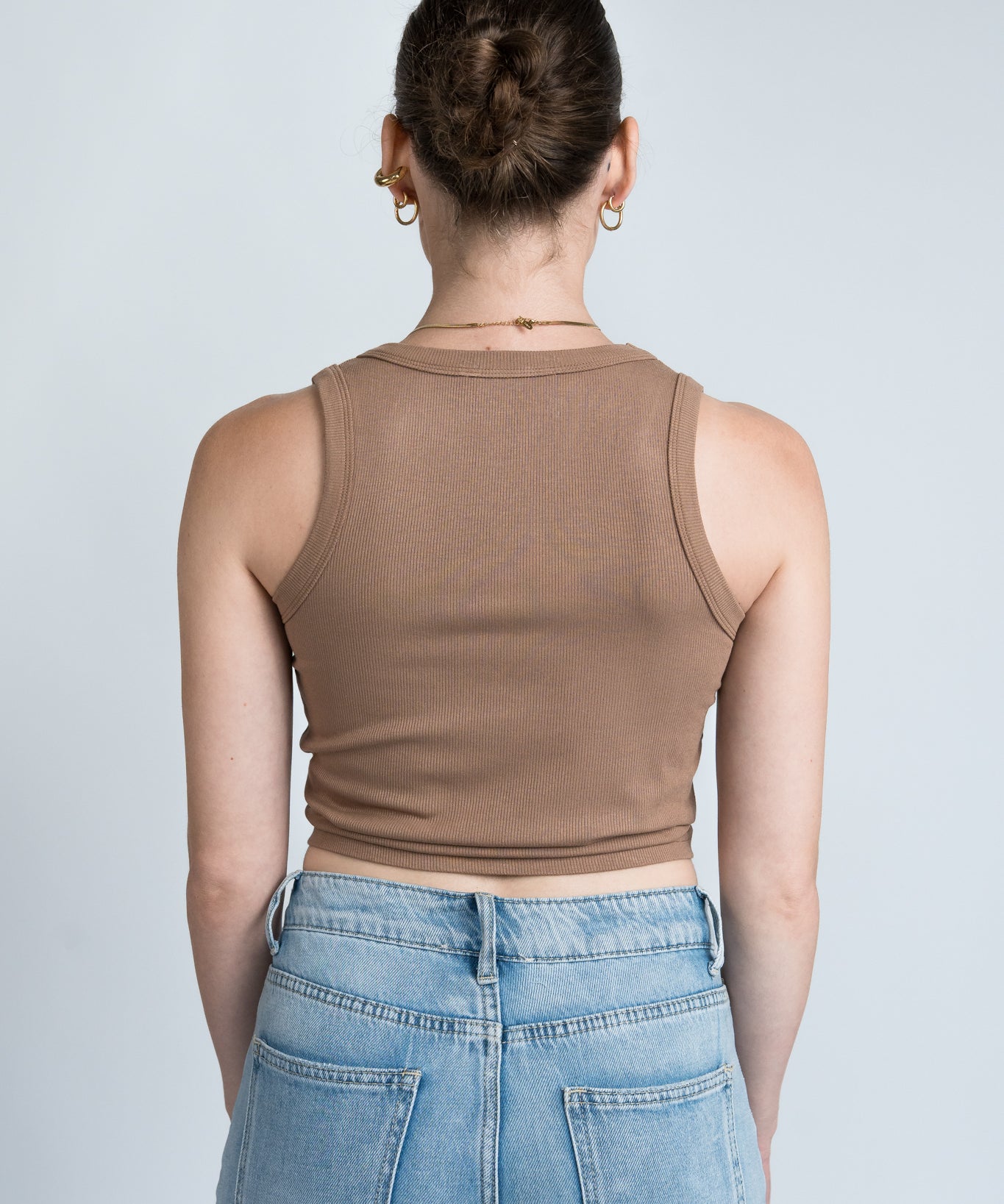 Body Gerippt mit Druckknöpfen Dunkelbraun
