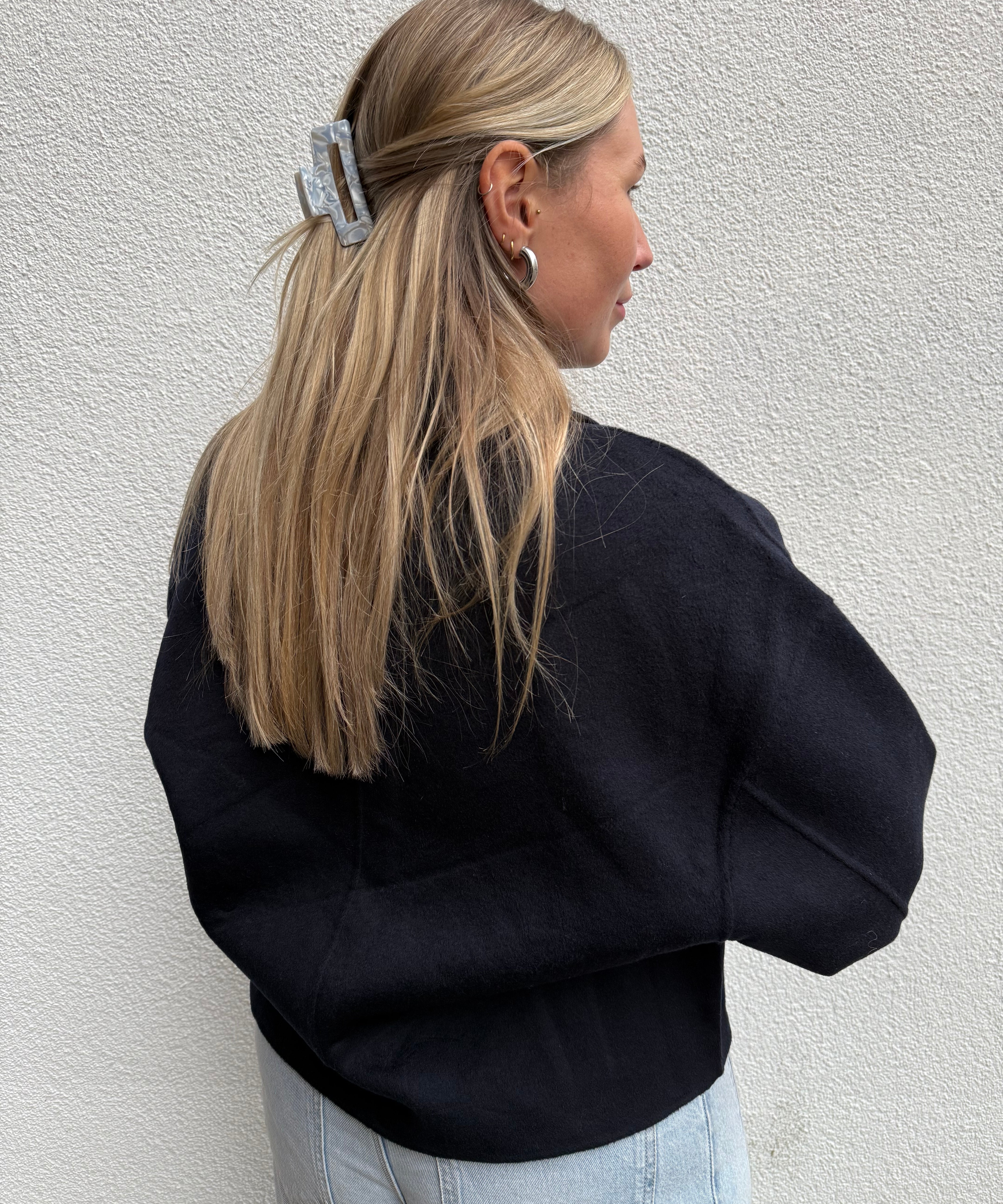 Jeans High Waisted Ballon Fit Schwarz Grau von hinten