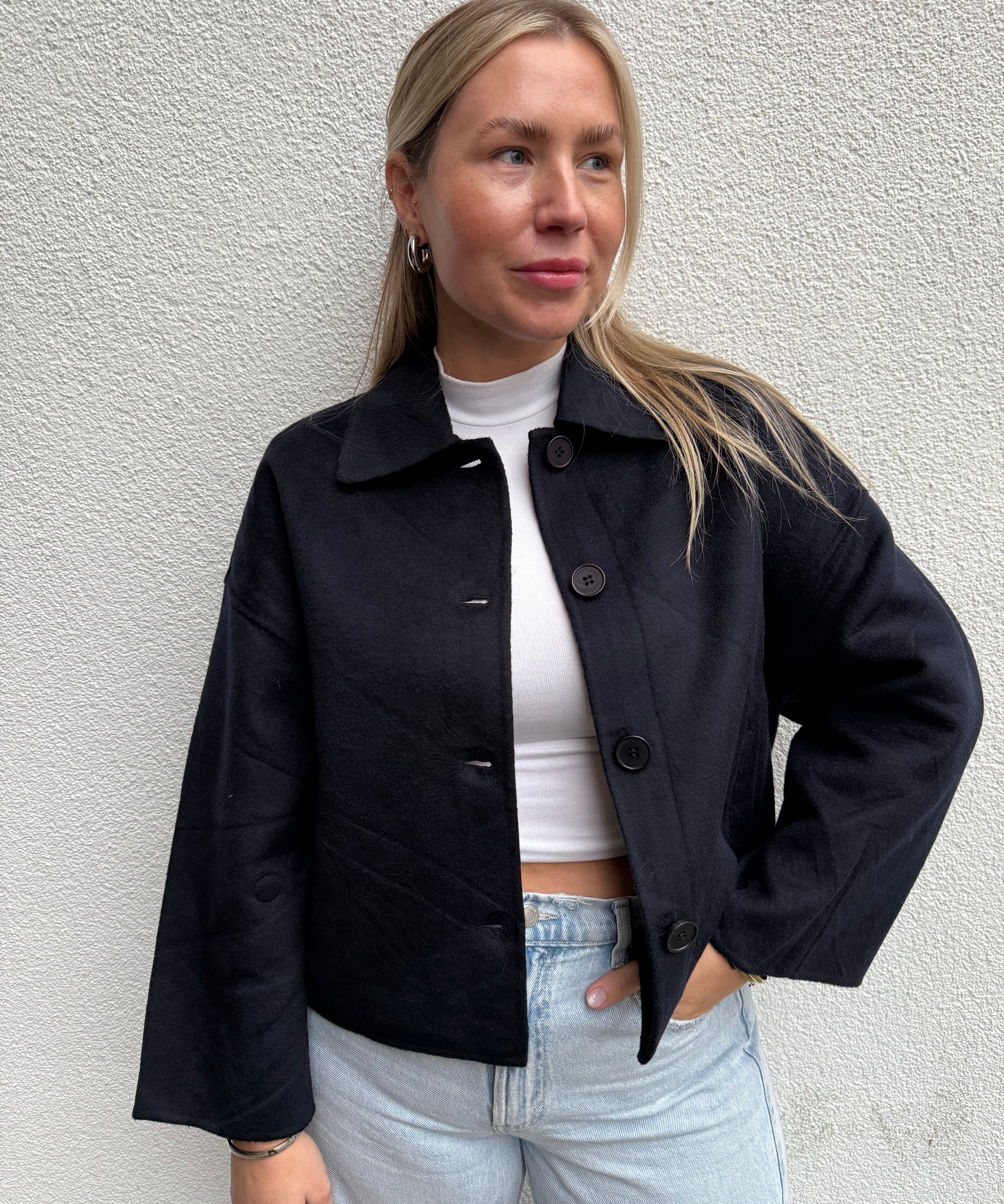Jeans High Waisted Ballon Fit Schwarz Grau von vorne