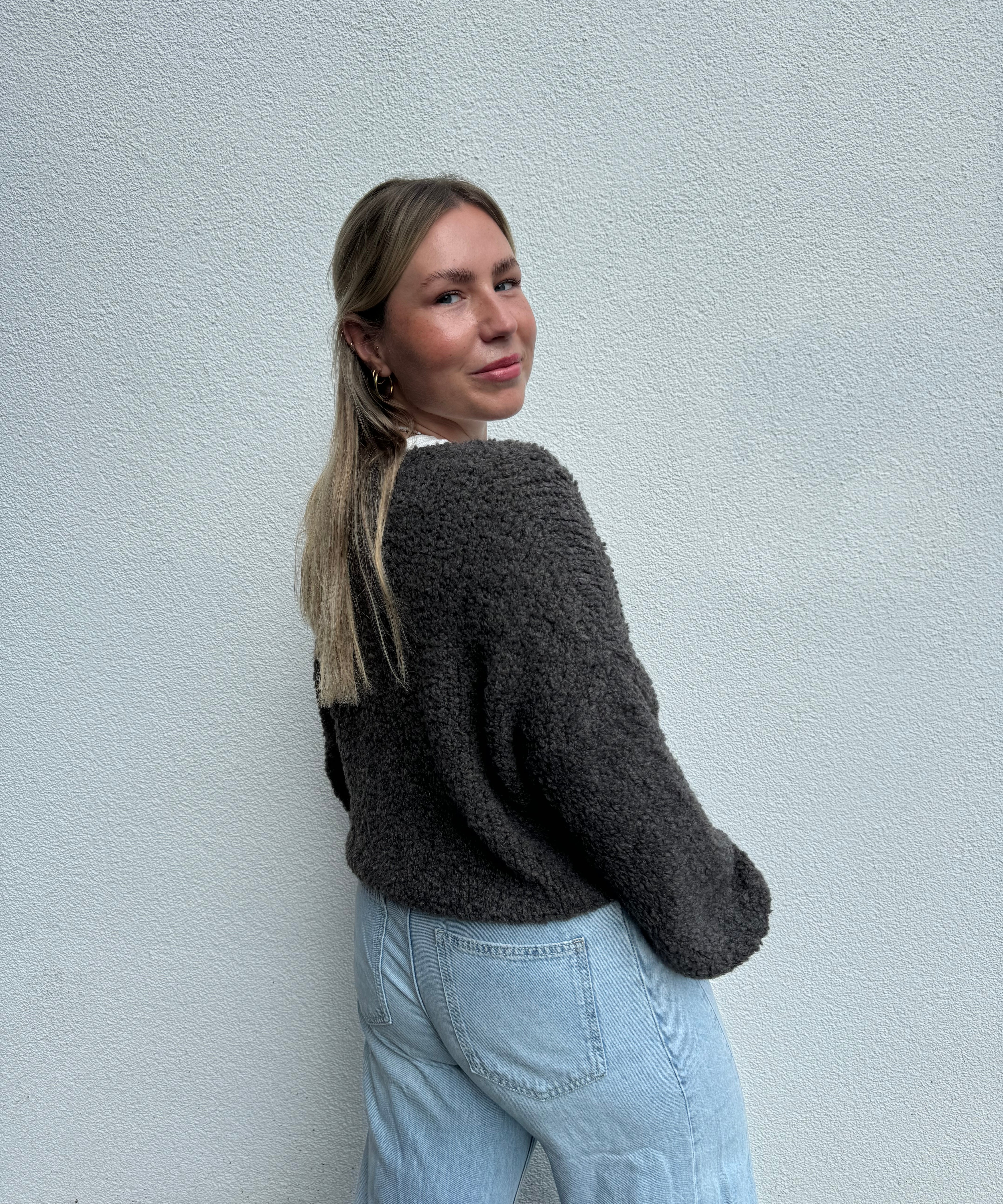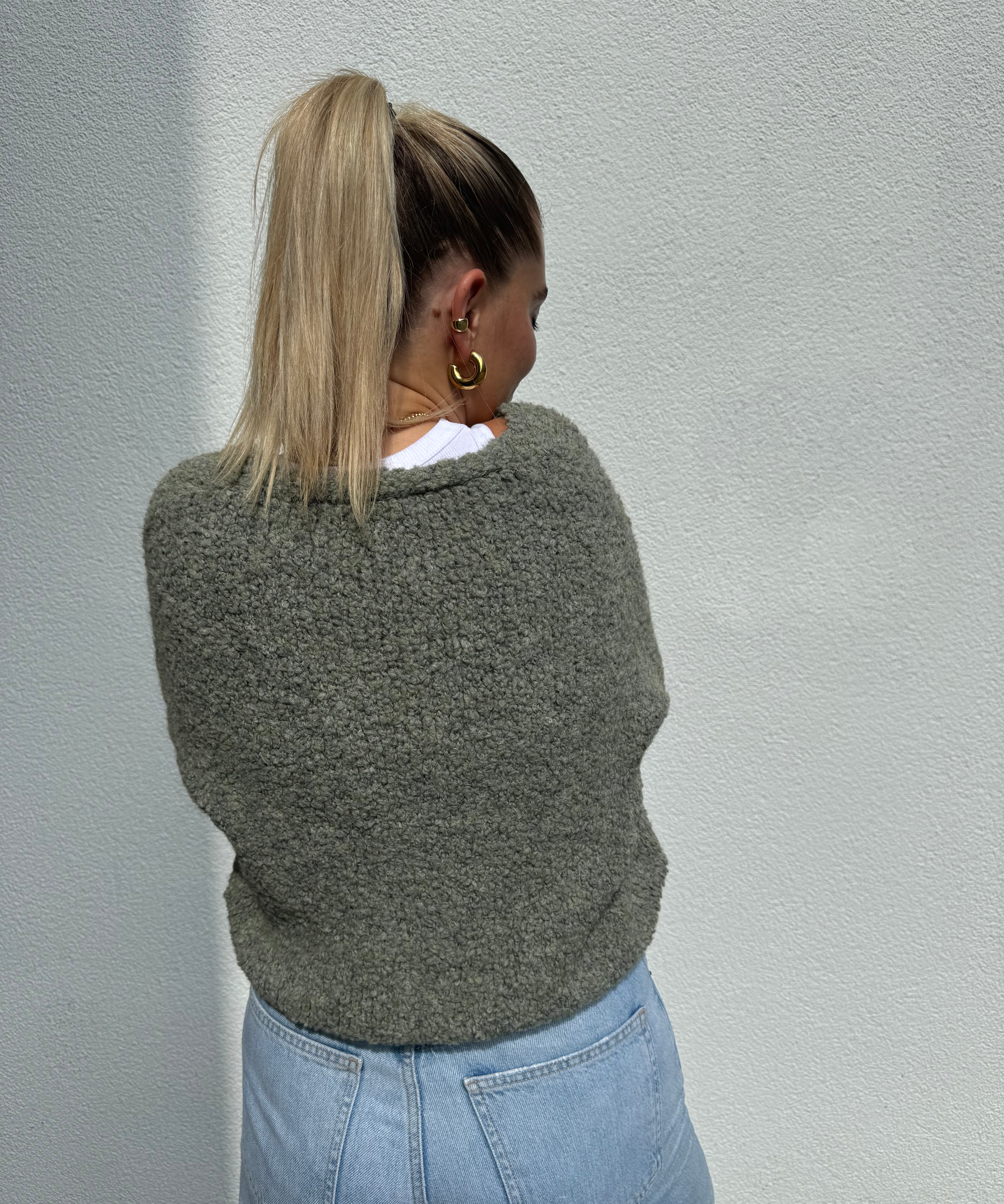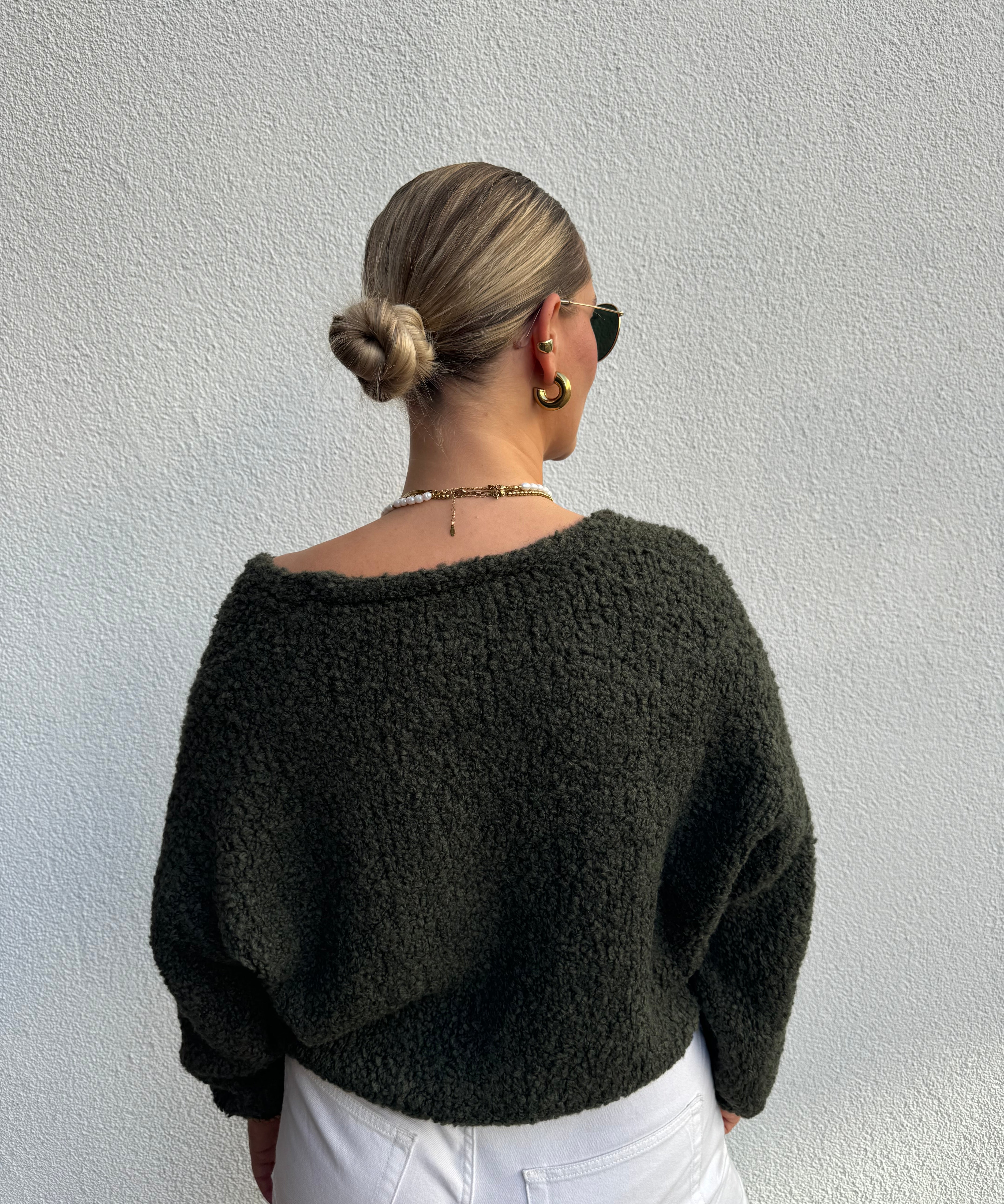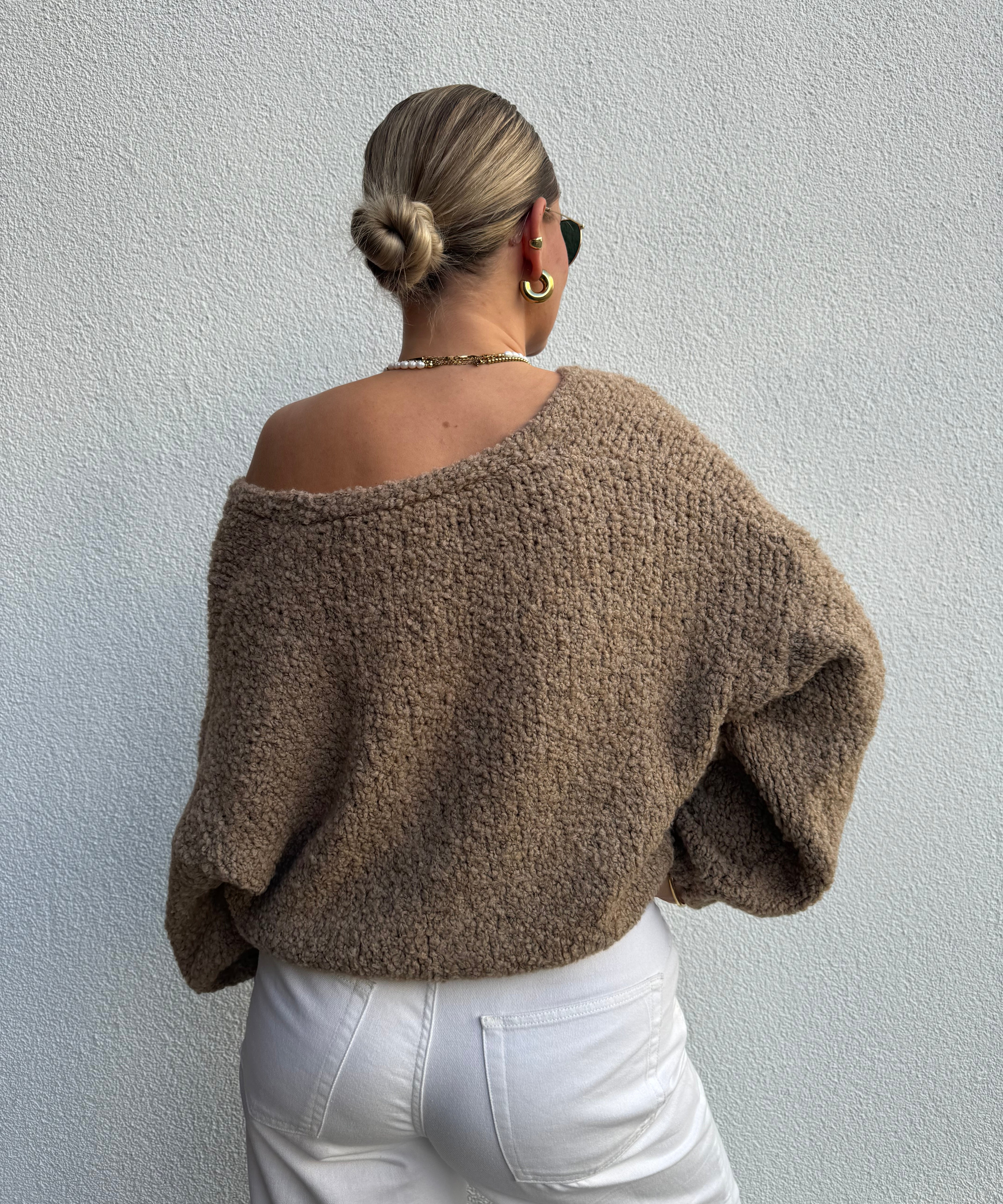 Strickweste mit goldenen Knöpfen Beige von hinten