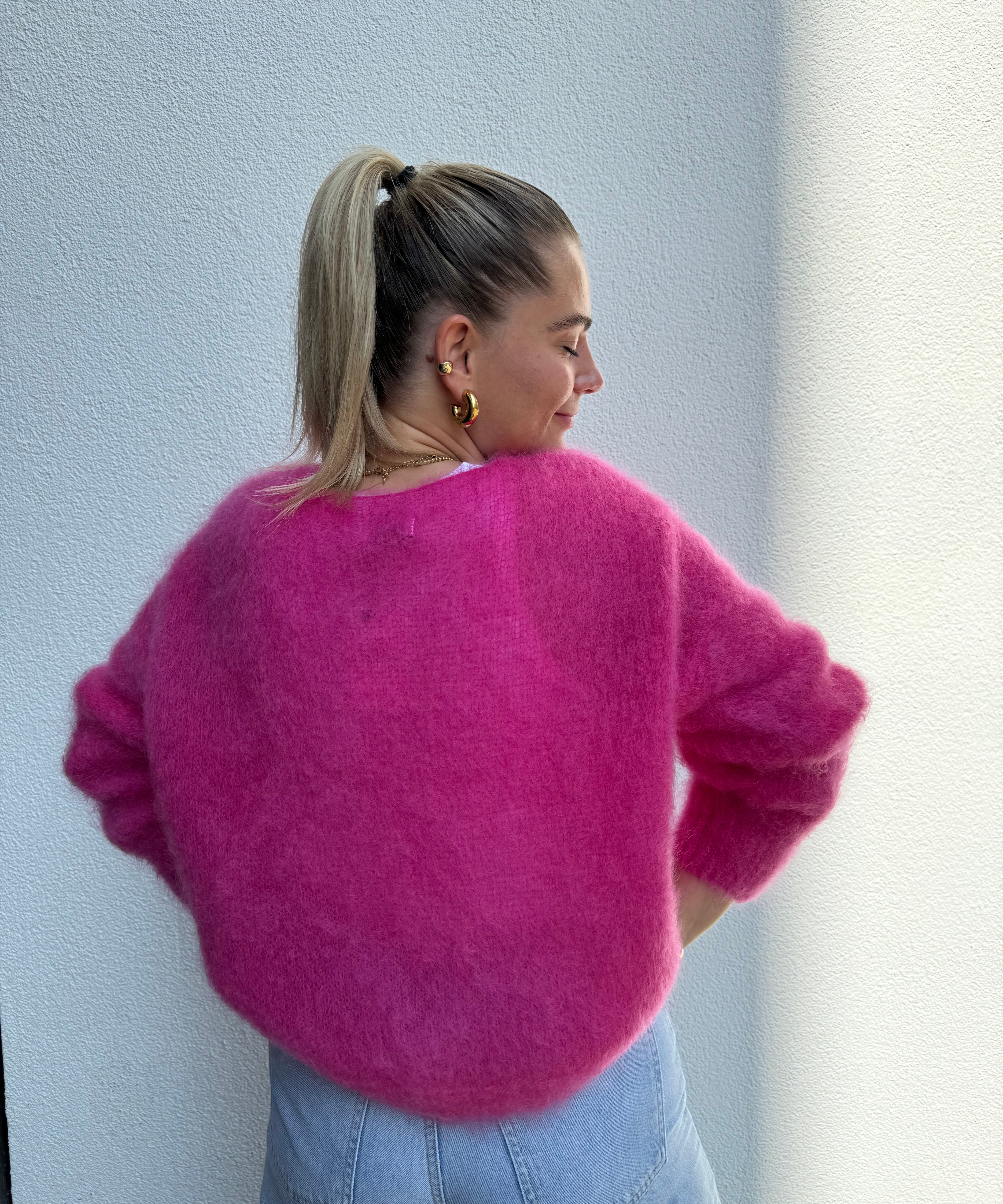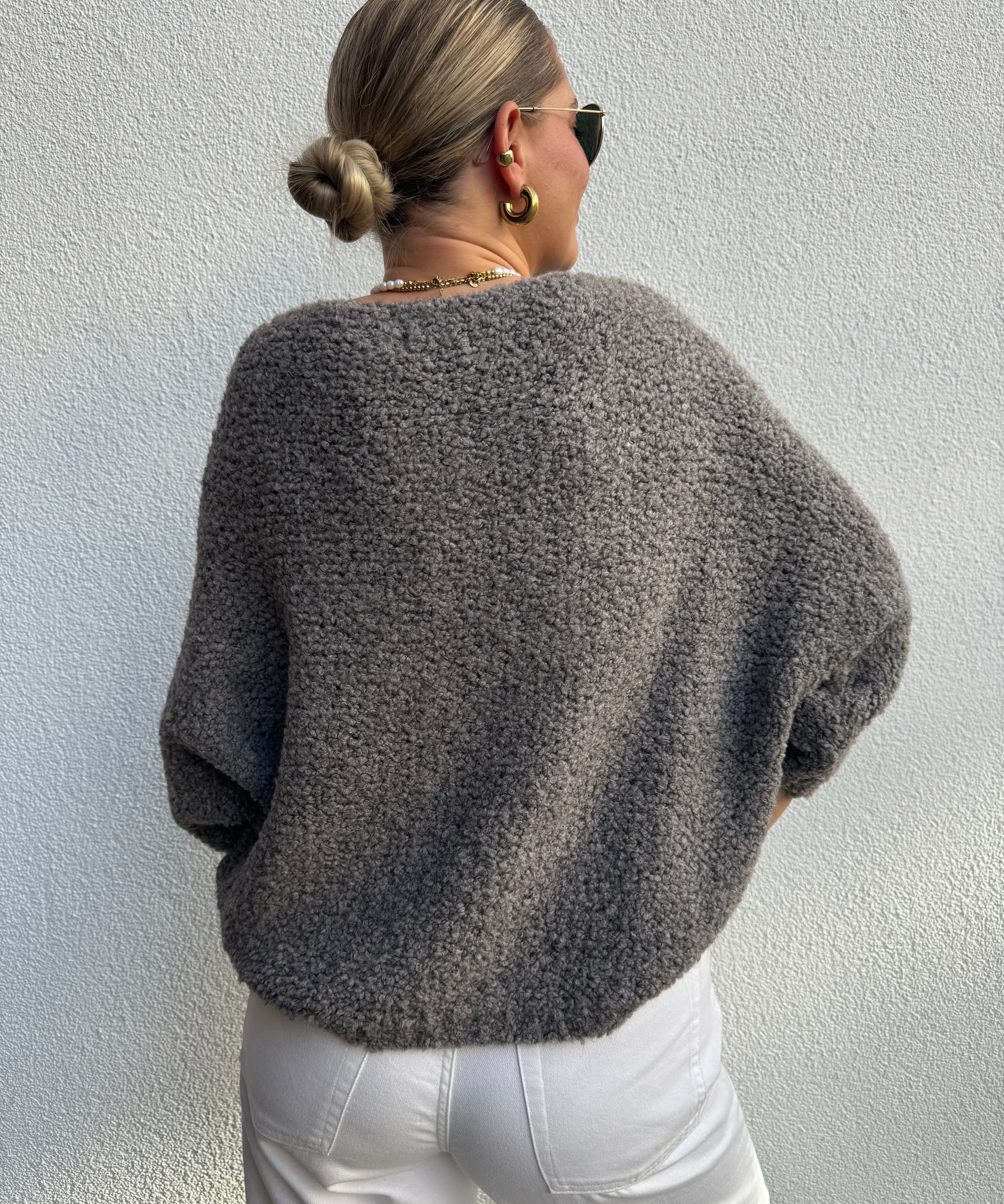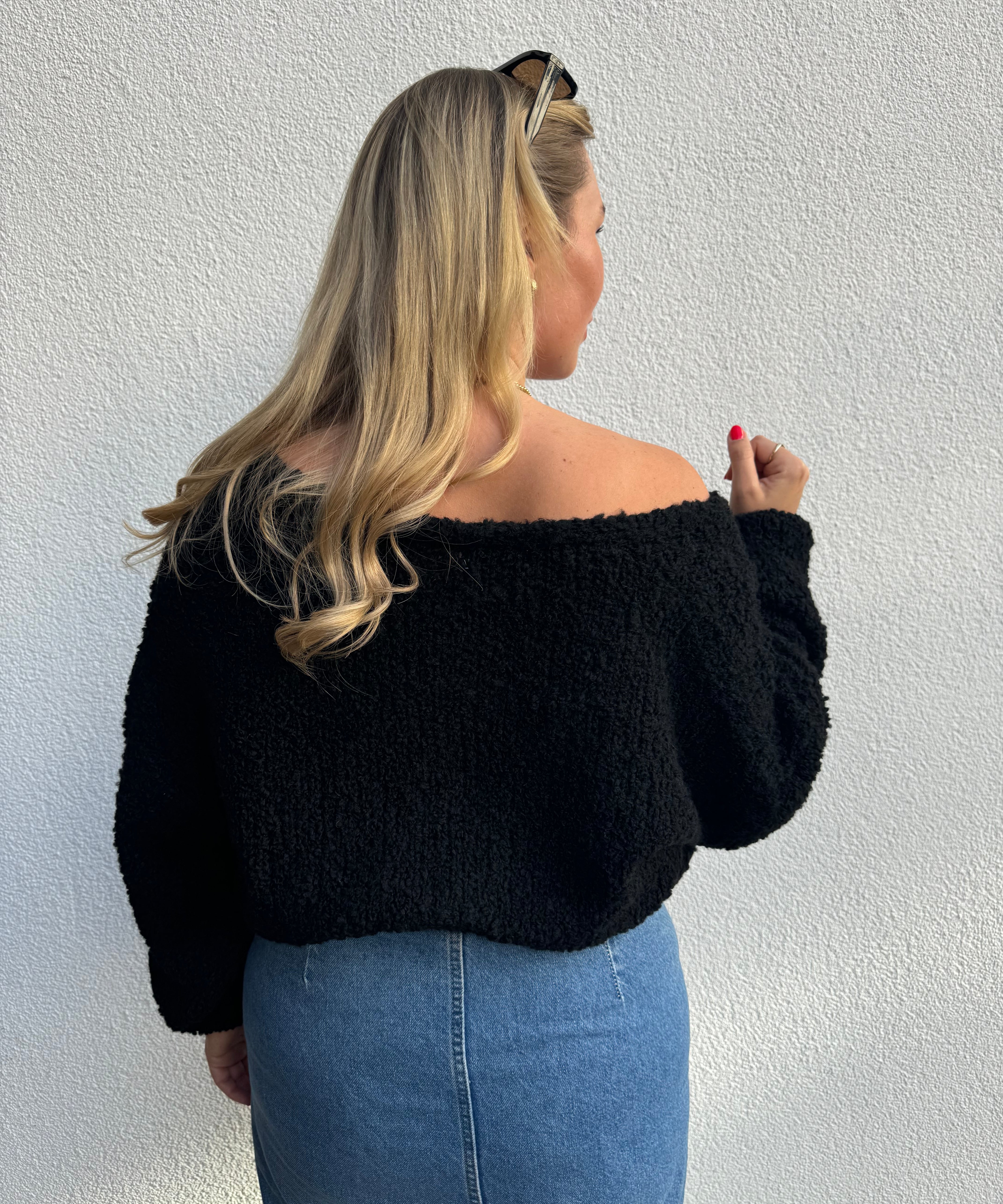 Strickpullover mit Rundhals Schwarz von hinten