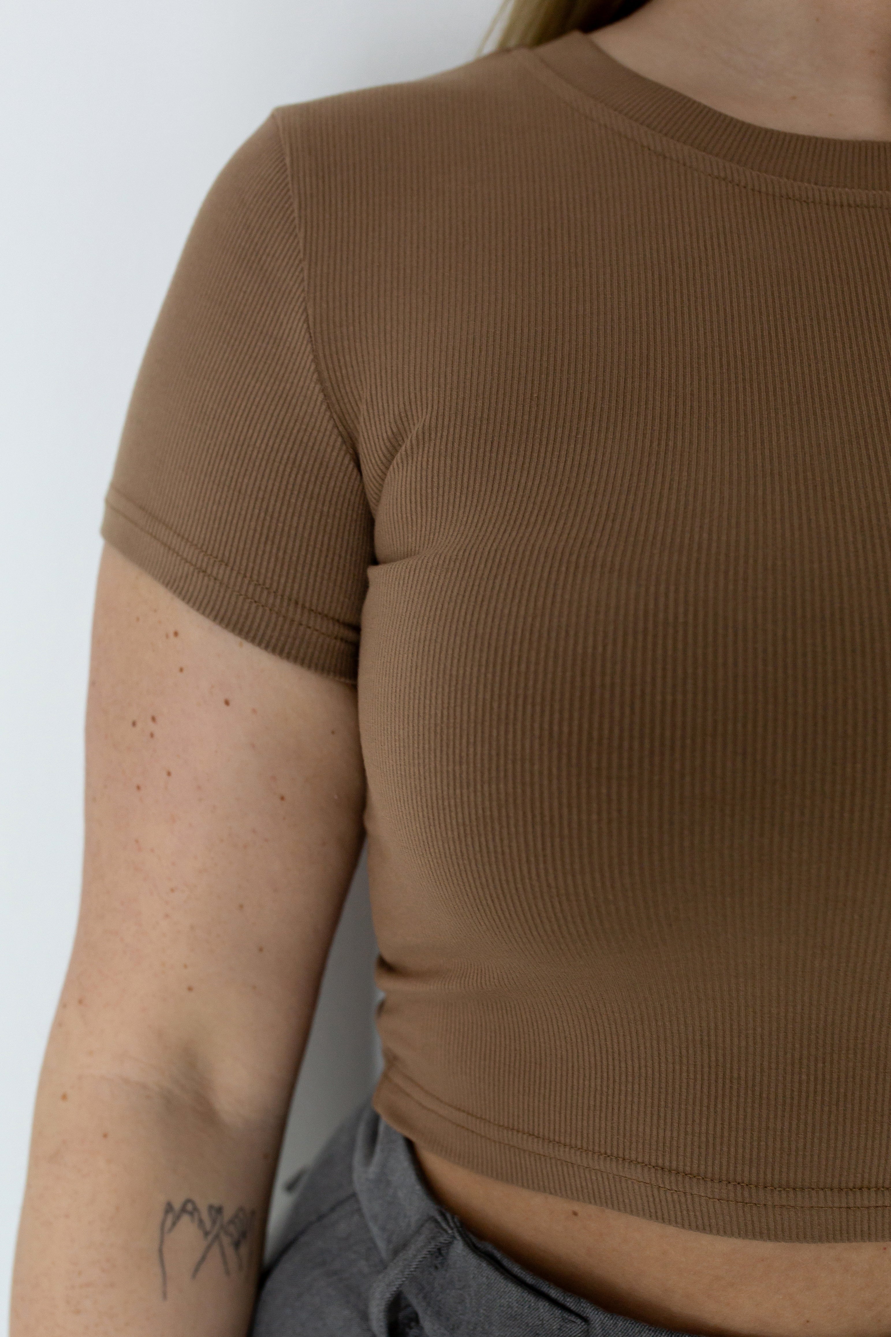 Basic Crop Top Shirt Brown