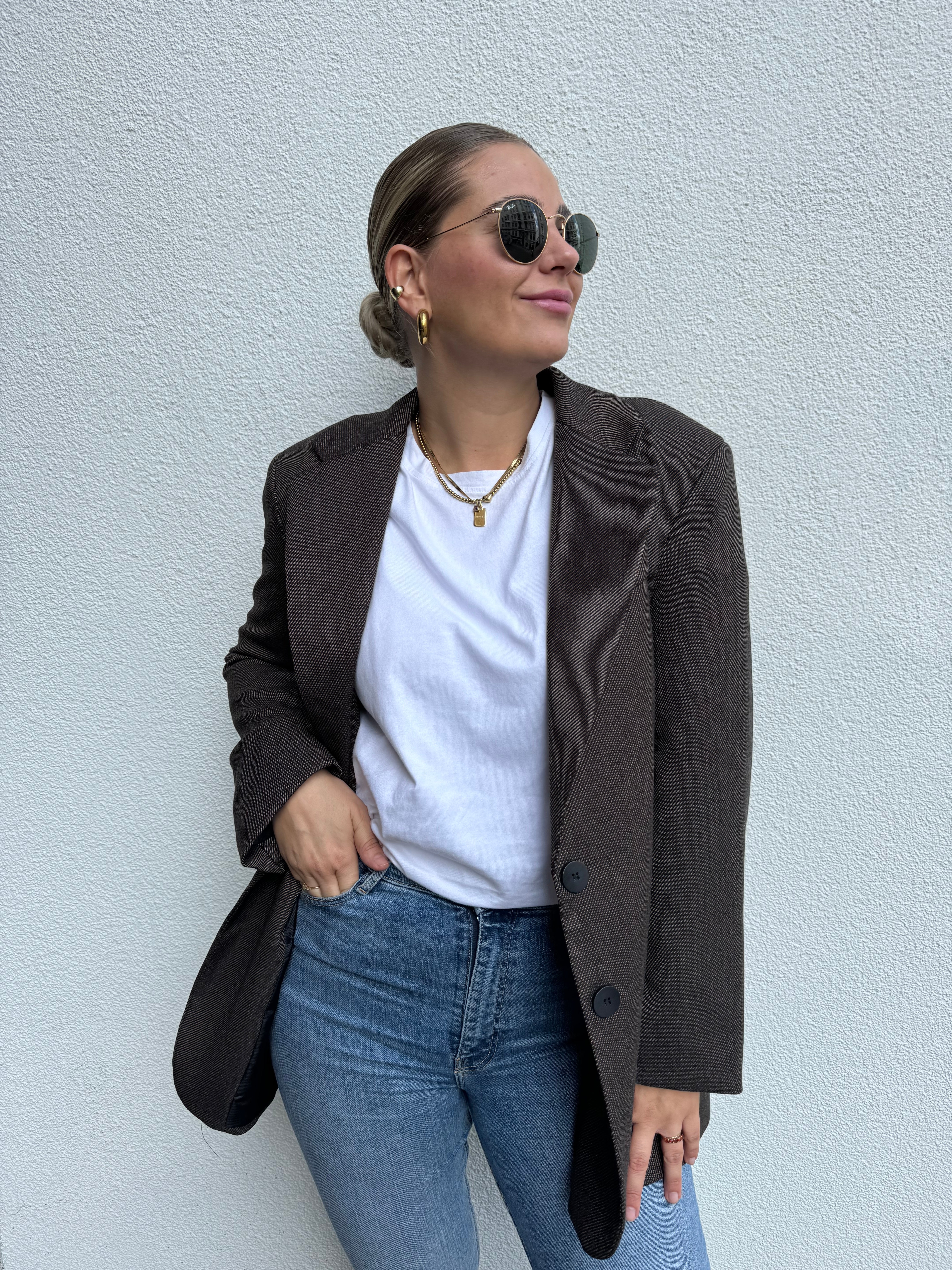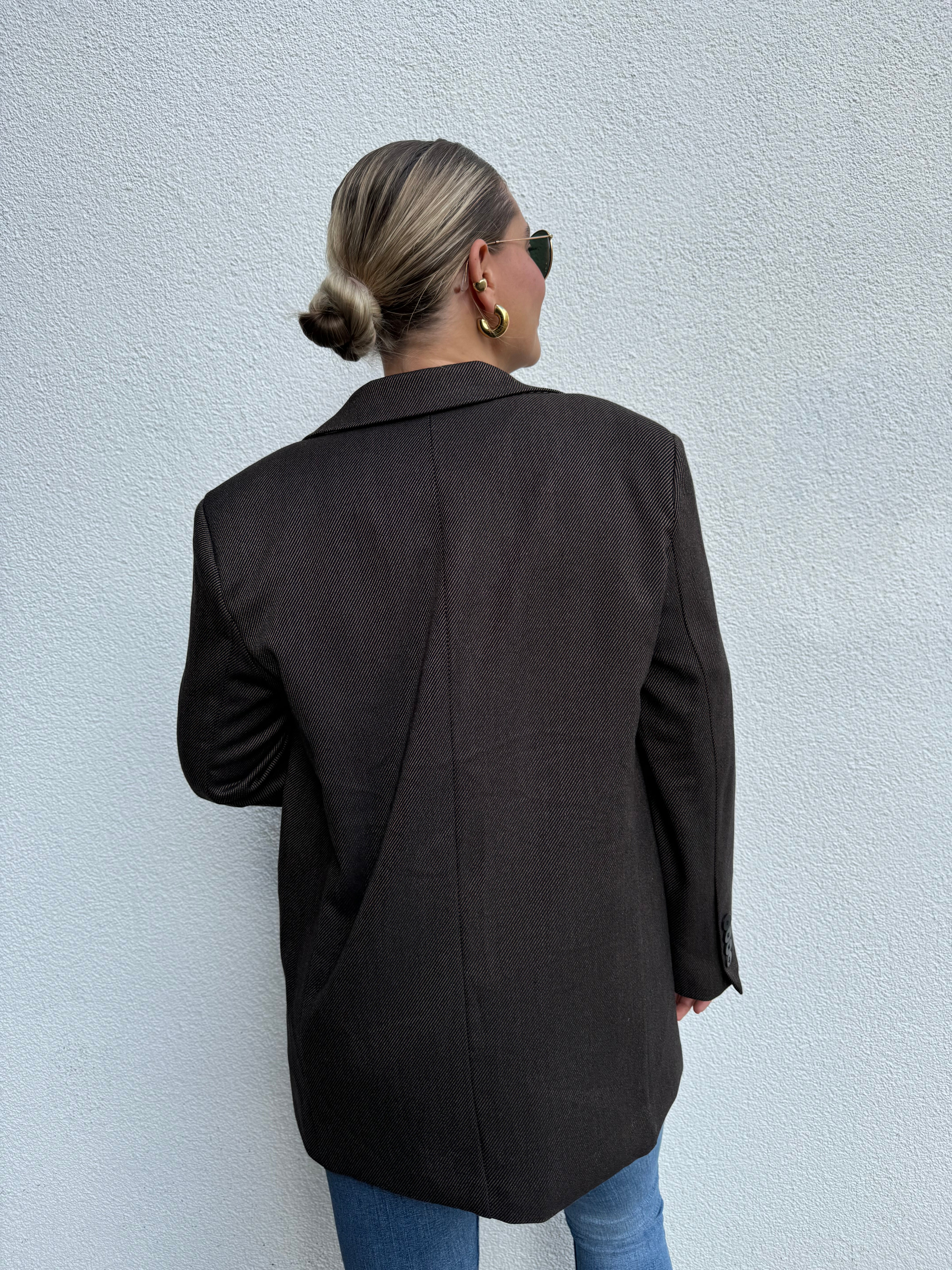 Oversized Long Blazer mit Muster Dunkelbraun Schokolade